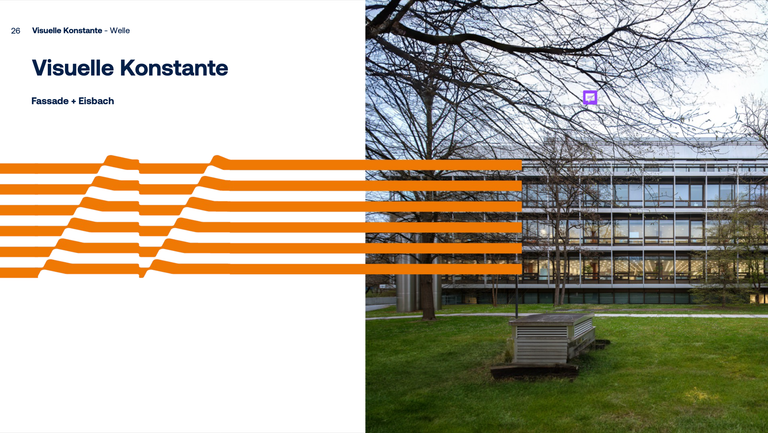 Through workshops, we created a brand system combining the Eisbach brook with Ruf’s architectural forms: a wavy striped pattern, simplified logo, and a 70s orange-and-water palette that contrasted against the park’s greenery.
